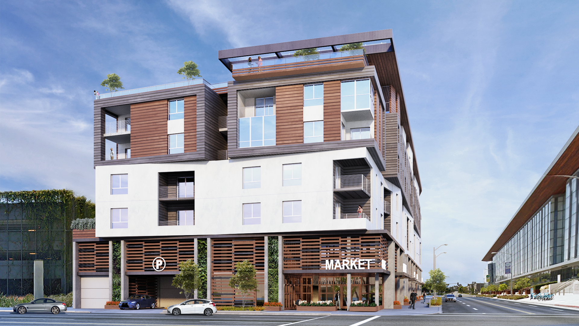 Located at 500 West Broadway in Long Beach, this mixed-use development features 142 residential units, including 65 studios, 41 one-bedrooms, 32 two-bedrooms, and 4 three-bedroom apartments. At street level, the building activates the public realm with 1,100 square feet of retail space and a 2,200-square-foot café.
