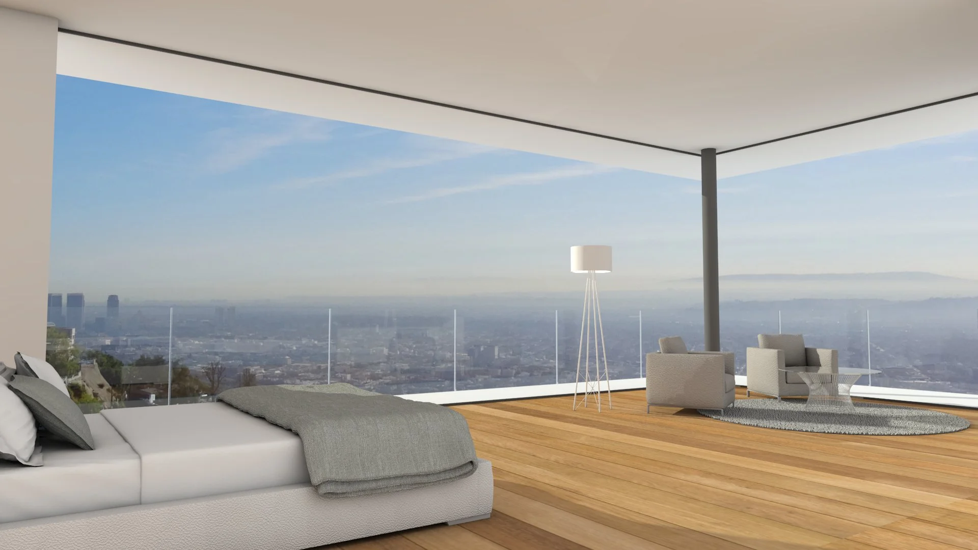 To maximize the stunning views of the surrounding landscape, floor-to-ceiling sliding glass doors were installed, allowing natural light to flood the interior and creating a seamless transition to the lush garden. This integration of the indoors with the outdoors is further enhanced by a minimalist color palette and the use of natural materials that echo the serene setting of Beverly Hills.